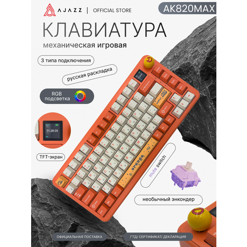 НАЙТИ ВЫГОДНЕЕ - Механическая клавиатура Ajazz AK820 Max, оранжевая, 3 типа подключения, Mute switch
