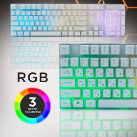Найти - Проводная игровая клавиатура Гарнизон белая 104 клавиши 12Fn подсветка Rainbow с 3 режимами 1.5 метра GK-200GL-W