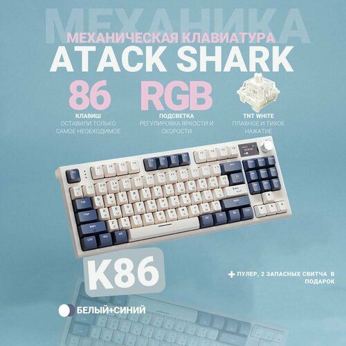 Найти - Клавиатура механическая беспроводная с подсветкой Attack Shark K86, белый синий