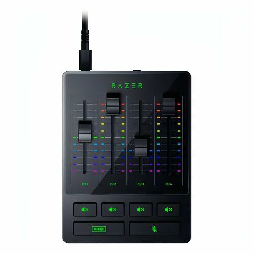 Микшерный пульт для вещания и ведения трансляций Razer Audio Mixer (RZ19-03860100-R3M1) в корпусе черного цвета позволяет создать в домашних условиях атмосферу профессиональной студии. Модель четырехканальная, функционирует от USB-порта. Контроллер совместим со сторонними устройствами на операционной системе Windows 10 версии и выше.