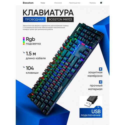 Представляем вам проводную механическую клавиатуру Bosston MK933 Black — идеальный выбор для вашего компьютера