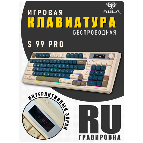 НАЙТИ ВЫГОДНЕЕ - Игровая беспроводная клавиатура с экраном AULA S99 Pro. Три режима подключения. RGB подсветка. Русская гравировка
