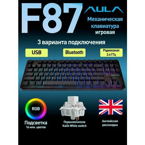 Найти - Клавиатура AULA F87 PRO Contour Line Black Kailh White switch черный матовый/прозрачный Английская раскладка USB, Радиоканал, Bluetooth