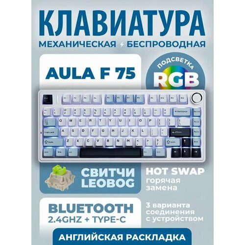 Найти - Беспроводная механическая клавиатура Epomaker x Aula F75, Наклейки с русским макетом