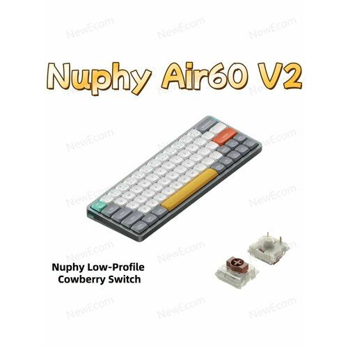 Найти - Беспроводная механическая клавиатура Nuphy Air60 V2 Brown Switch, Lunar Gray