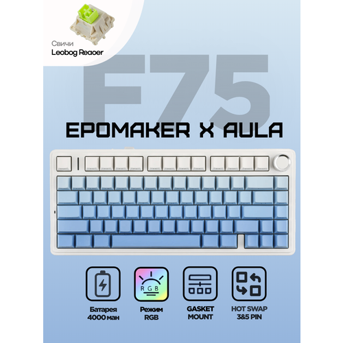 Беспроводная механическая клавиатура Epomaker x Aula F75 Blue - это отличный выбор для тех, кто ищет надежное и удобное устройство для работы, игр или стриминга.