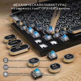 Найти - Механическая игровая клавиатура в стиле ретро с возможностью горячей замены 83 клавиш, Bluetooth 5.0 + USB, возможность регулировки 14 режимов освещения, подходит для компьютера, ноутбука, мобильных игр, русская /английская клавиатура.