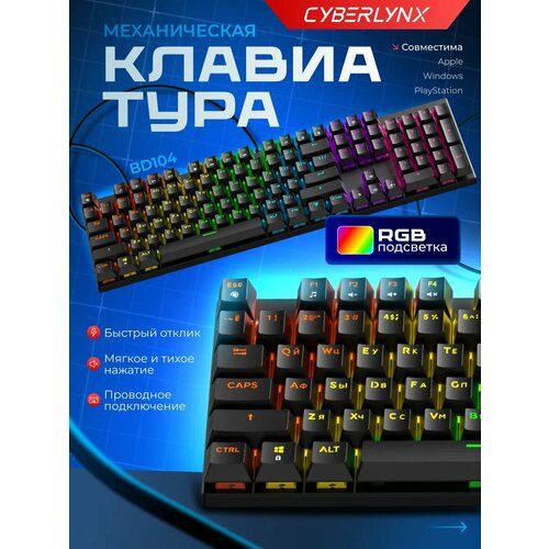 Найти - Клавиатура механическая с подсветкой 100% Cyberlynx, игровая, 104 клавиши, для компьютера и ноутбука, 104 клавиши