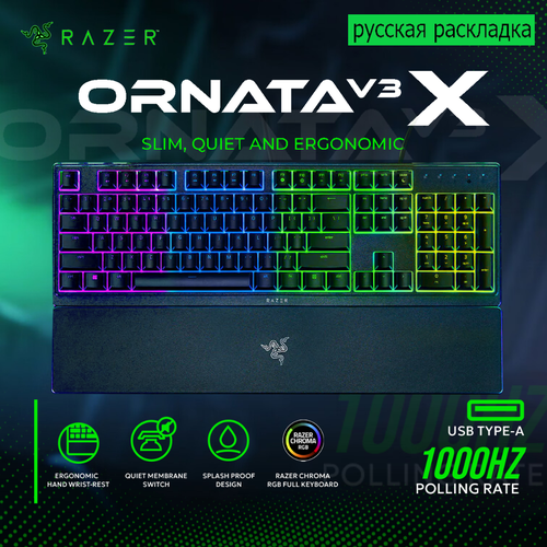 Найти - Игровая клавиатура Razer Ornata V3 X Silent Membrane Switches проводная, русская, 104 клавиши