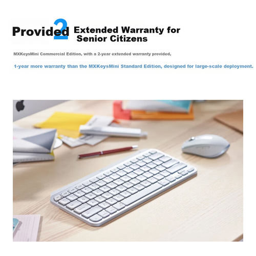 Товар Logitech MX Keys Mini Wireless Bluetooth Keyboard, High-End Office Smart Backlit, with Receiver, Commercial Version, Light Grey