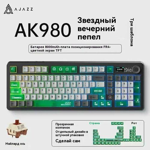 Найти - AJAZZ AK980 Механическая клавиатура трехрежимная, беспроводная игровая с экраном, 2.4g/Bluetooth/проводное подключение