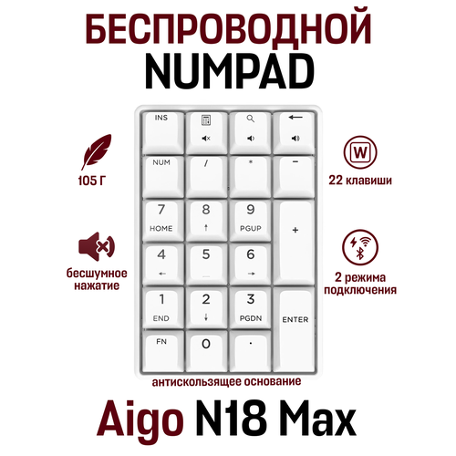 Беспроводной цифровой блок клавиатуры Aigo Slim Keypad Numpad N18 Max - это удобное и функциональное решение для работы с различными устройствами.
