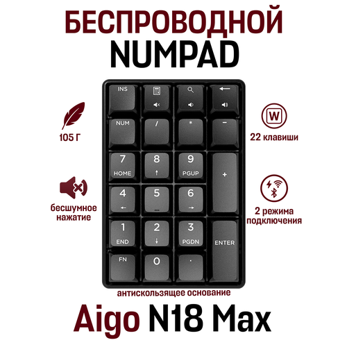 Беспроводной цифровой блок клавиатуры Aigo Slim Keypad Numpad N18 Max - это удобное и функциональное решение для работы с различными устройствами.