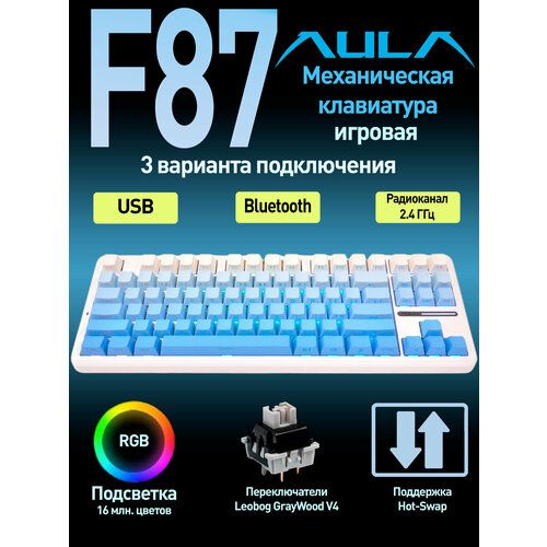 Найти - Клавиатура AULA F87 PRO Blue Leobog Gray Wood V4 (9098) голубой Английская раскладка USB, Радиоканал, Bluetooth