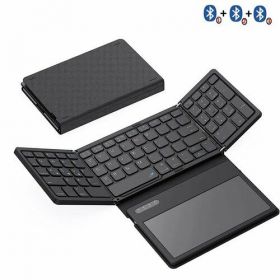Портативная клавиатура Bluetooth с тройным складыванием Сложите ее в рабочую сумку или просто положите в ручной клади для деловых поездок. Где бы вы ни работали, наслаждайтесь знакомым настольным набором текста на клавиатуре Bluetooth с цифровой панелью и поверхностью сенсорной панели на 20% больше, чем у предыдущих моделей. Эффективная навигация по экранам и Многозадачность без упаковки отдельной мыши.