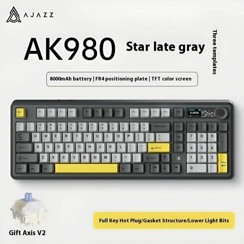 Найти - AJAZZ AK980 Механическая клавиатура трехрежимная, беспроводная игровая с экраном, 2.4g/Bluetooth/проводное подключение