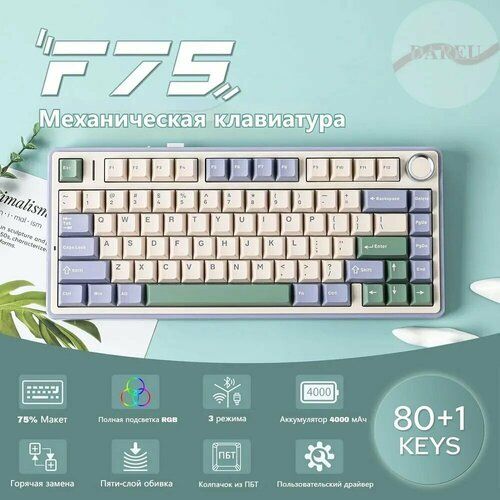 Найти - Клавиатура AULA F75, механическая, подсветка, английская, 75%, Bluetooth