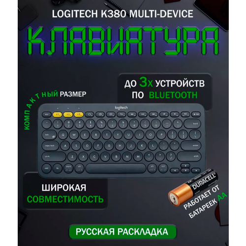 Найти - Клавиатура беспроводная Logitech K380 Multi-Device Gray, англ/русская, подключение 3-х устройств