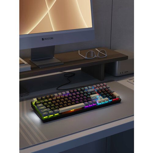 Представляем Вам проводную механическую клавиатуру ROCOBI R2 — идеальный инструмент для тех, кто ценит стиль и функциональность. С её уникальным дизайном, в котором гармонично сочетаются элегантные линии и современные акценты. Эта клавиатура станет не только полезным аксессуаром, но и настоящим украшением вашего рабочего места. ROCOBI R2 предлагает пользователям 10 различных режимов подсветки, позволяя настроить атмосферу под любое настроение или стиль. Световые эффекты плавно переключаются, создавая захватывающий визуальный опыт, будь то в темной комнате или при ярком дневном свете. Также клавиатура имеет боковую подсветку. Теперь Вы можете подчеркнуть индивидуальность Вашего рабочего пространства и сделать его более уютным. Обладает функцией Hot-Swap. Механические переключатели обеспечивают мгновенную реакцию на каждое нажатие, что делает клавиатуру идеальным выбором как для геймеров, так и для офисных задач. Удобные, тактильные клавиши позволяют легко и быстро печатать, минимизируя утомляемость во время длительных сессий.