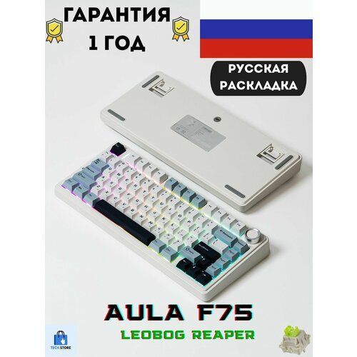 Найти - Игровая клавиатура Aula F75 белая, бело-сине-голубая, свитчи Leobog Reaper, русская раскладка