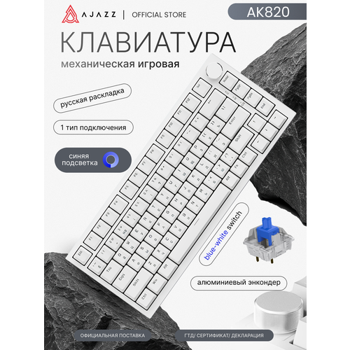 Найти - Механическая клавиатура с синей подсветкой Ajazz AK820, Blue-White Switch