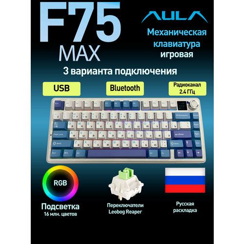 Найти - Клавиатура AULA F75 MAX Purple Leobog Reaper Switch (1851) белый/фиолетовый Русская раскладка USB, Радиоканал, Bluetooth