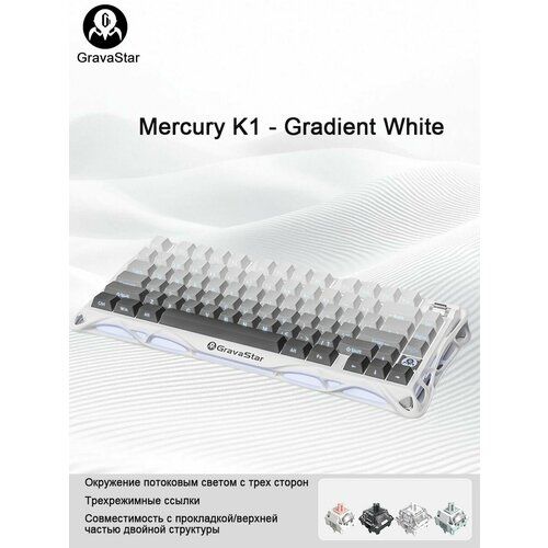 Найти - Gravastar геймерская клавиатура win mac 2.4G/Bluetooth/Type-C Mercury K1 Pro 75% layout, градиентный белый
