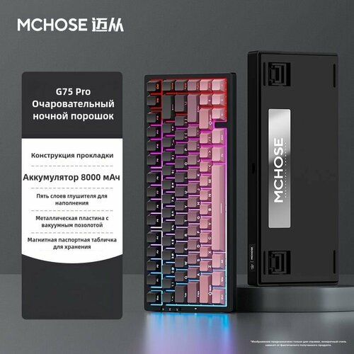 MCHOSE G75 Pro Игровая клавиатура беспроводная-Matcha latte shaft V2, светло-розовый