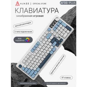 Найти - Мембранно-механическая клавиатура AJAZZ AF98 PLUS, темно-синяя, 3 типа подключения, RGB подсветка