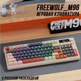 Найти - Игровая беспроводная мембранно-механическая клавиатура FreeWolf_M96, RGB подсветка, инфо-дисплей. Бежевая