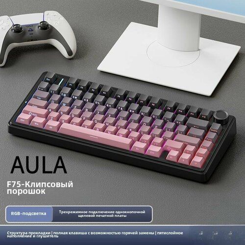 Найти - Игровая клавиатура беспроводная AULA F75 механическая , Bluetooth / 2.4GHz / USB - C, Английская раскладка, черный-розовый-Leobog Reaper