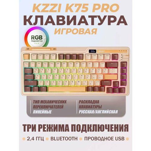 Найти - Клавиатура игровая KZZI K75 Pro Mousse Moment Linear Switch, Type C/Type A/Bluetooth/Wi-Fi, 3750мАч, (RU)