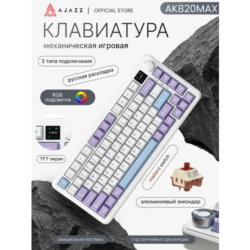 НАЙТИ ВЫГОДНЕЕ - Механическая клавиатура Ajazz AK820 Max, белая, фиолетовая, 3 типа подключения, Maillard Switch