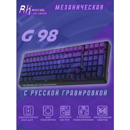 Найти - Игровая клавиатура Royal Kludge G98, беспроводная, механическая, RGB подсветка, 98 клавиш, фиолетовая\черная