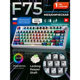 Найти - Беспроводная механическая клавиатура AULA F75 Comic Keycap Leobog Light Green Switches, 3 варианта подключения: проводное, Bluetooth, 2.4 Ггц, русская раскладка