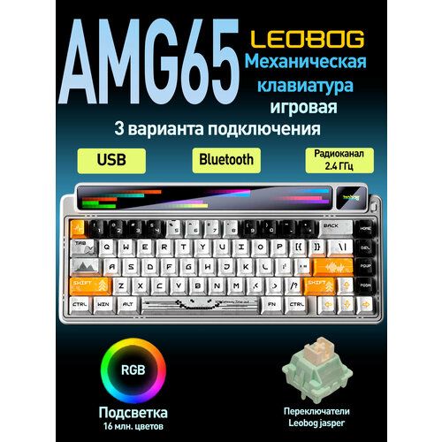Найти - Клавиатура AULA -Leobog AMG65 White Leobog Jasper Switch (7215) белый Английская раскладка USB, Радиоканал, Bluetooth