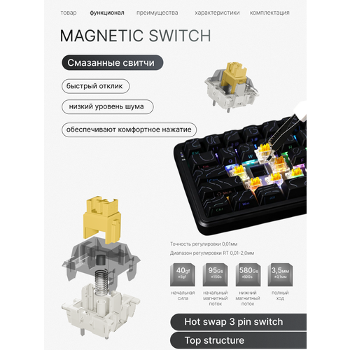 -Быстрые и плавные нажатия благодаря магнитным переключателям.