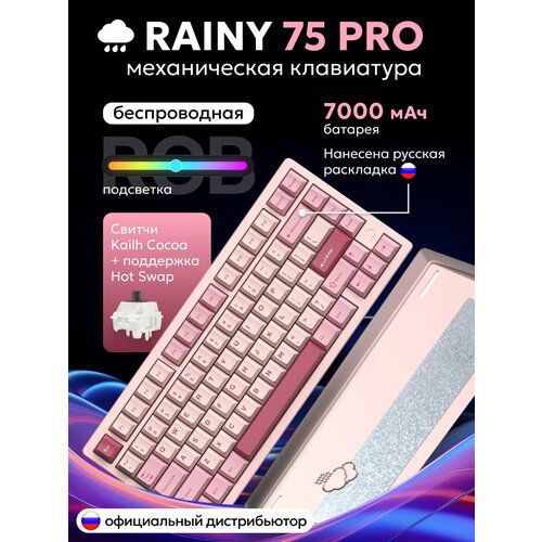 Игровая механическая клавиатура с подсветкой RGB Rainy 75 PRO — это идеальный аксессуар для геймеров и пользователей ПК, ноутбуков и планшетов. Клавиатура для компьютера сочетает в себе проводное и беспроводное подключение, позволяя легко переключаться между различными устройствами.