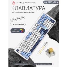Найти - Механическая клавиатура AJAZZ AK980 MAX, бело-голубая, проводная, RGB подсветка, Magnetic Switch