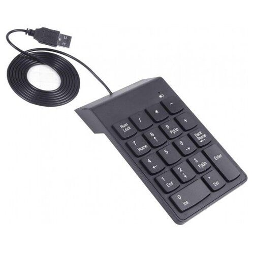 Поставляется со встроенным кабелем USB, подключите и работайте, без необходимости загружать драйверы и настраивать. Длина USB-кабеля составляет 75 сантиметров - оптимально для использования с ноутбуком. Конструкция из 18 клавиш оснащена клавишей Backspace, клавишей ScrolLock и другими мультимедийными клавишами.
