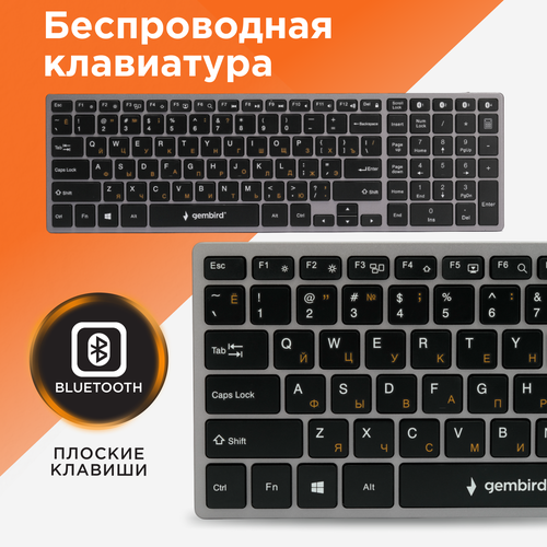 Найти - Беспроводная клавиатура Gembird KBW-2 серебристый, английская/русская (ANSI), 1 шт.