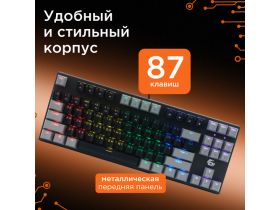 Механическая проводная клавиатура Gembird черно-серая 87 клавиш c регулируемой подсветкой Rainbow коричневые свитчи кабель 1.8 метра KB-G600-1 847143051
