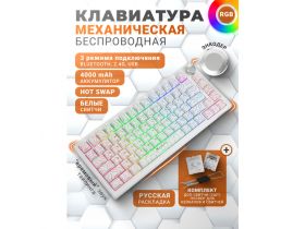 Клавиатура механическая беспроводная игровая, RGB подсветка, Hot-Swap, Type-C + 2.4G + Bluetooth, белая, белые свитчи 4661129391