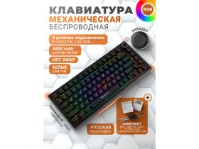 Клавиатура механическая беспроводная, игровая, RGB подсветка, Hot-Swap, Type-C + 2.4G + Bluetooth, черная белые свитчи 4661141507