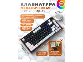 Клавиатура механическая беспроводная игровая, RGB подсветка, Hot-Swap, Type-C + 2.4G + Bluetooth, зеленые свитчи 4656663394