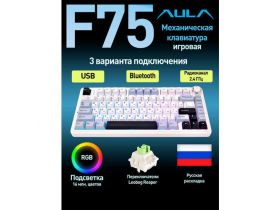 Клавиатура AULA F75 механическая беспроводная Bluetooth / 2,4 ГГц / USB -C Английская раскладка 103805214571