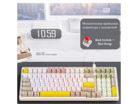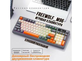 Игровая беспроводная мембранно-механическая клавиатура FreeWolf_M96, RGB подсветка, инфо-дисплей. Бежевая Русский 103825012090