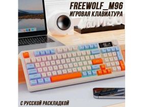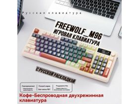 Игровая беспроводная мембранно-механическая клавиатура FreeWolf_M96, RGB подсветка, инфо-дисплей. Белая 4581309047