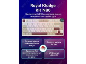 Беспроводная низкопрофильная механическая клавиатура Royal Kludge RK N80 цвет Rosy Clouds, RGB, Hot Swap, кейкапы с подсветкой символов EN, линейные свитчи (Low-Profile RK Red) 103566531999