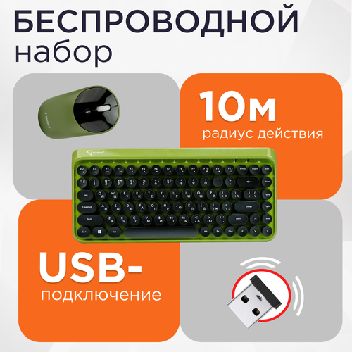 НАЙТИ ВЫГОДНЕЕ - Беспроводной комплект клавиатуры и мыши со сменным разрешением до 1600 DPI, ретро-дизайн, лазерная гравировка клавиш, режим экономии энергии, Gembird